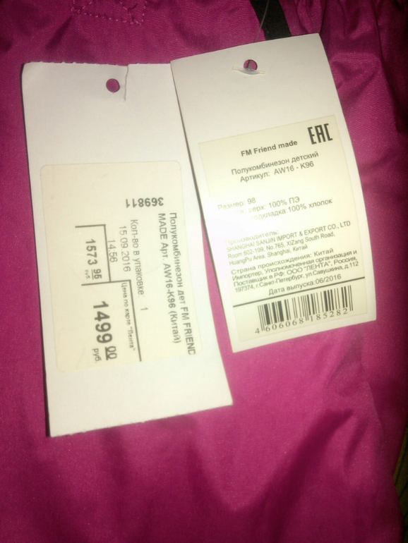 Распродажи. Скидки. Акции.в Ленте полукомбинезон FM 199 руб .Цена до скидки по карте 1499