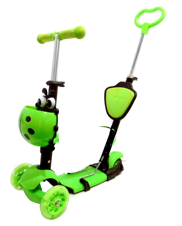 4. Если не сообразит как кататься на самокате, попробуем как подобие беговела.