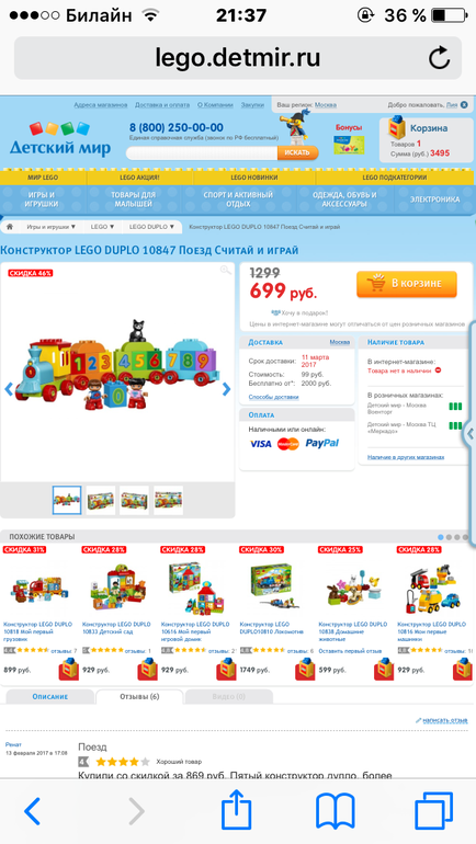 liviya в Выбор товаров 9 лет Скидка в ДМ Игрушки http://lego.detmir.ru/product/index/id/2497211/ Посмотрите еще 20 записей на эту тему Отменить Ответить Elena Этот набор в каталоге со скидкой был. Успела купить в офлайн дм. Каталог действовал до 09.03.2016 10.03.2017 Ответить Евгения Интересно, а в розничных магазинах нет скидок на дупло? 10.03.2017 Ответить Ольга По ссылке) 10.03.2017 Ответить Оксана Вчера вечером заказала за 699. А теперь цена на сайте 879? Интересно, подтвердят мне...? 10.03.2017 Ответить Ольга Повезло что успели) проверьте заказ в личном кабинете 10.03.2017 Ответить Оксана Написано "Обработан", напротив 699 р...Проверим порядочность ДМ))) 10.03.2017 Ответить Ольга много раз проверено что ДМ один из самых непорядочных в этом плане магазинов, но думаю вам повезет)) 10.03.2017 Ответить Оксана Подтвердили! Прям респект ДМ, не обломали!) 10.03.2017 Ответить Лена Вставьте ссылку пожалуйста 09.03.2017 Ответить Что за кукла? Самосвал Чаты Беременных Выберите чат: Январята-2026 Февралята-2026 Мартята-2026 Апрелята-2026 Майчата-2026 Июнята-2026 Июлята-2026 Августята-2026