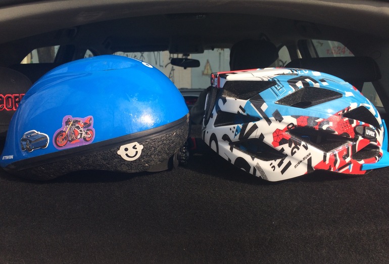 Пока ездил с нами на велосипеде- все внимание - ему, этому шлему :)