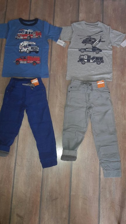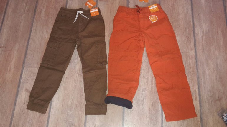 А еще штанишки джимбори, оказались тонкий вельвет с подкладкой хлопковой (думала просто плотный вельвет), по талии веревочками регулируются. Очень понравились. Буду примерять какой размер нам подойдет (взяла от 5 до 7л), остальное в пристрой. Оранжевые штанишки с флис подкладом, в прошлом году подкладка джерси была - это на погоду теплее, чем с флисом. Футболки картерс как всегда вне конкуренции), взяла на 5 и 6л, но, видимо 5л оставлю, на 6 уж очень большие.