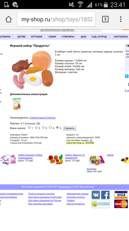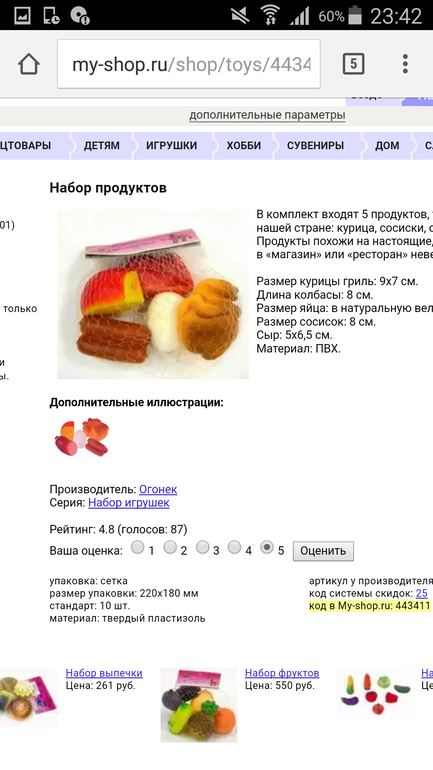 огонек понравился - в майшоп брала - у нас хлеб и набор где сыр, колбаса...еще брала, подешевле наборы от Спектр - ну пойдет за такие деньги, но пластик жесткий...с али брала пластиковые разрезные овощи и пиццу на липучках - тут их дешевле даже можно взять - ну тоже на 4 для меня.