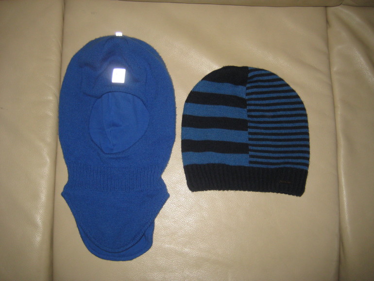 На горку кататься или при ветре одеваю шерстяной шлем Рейма, а так обычную глубокую шерстяную шапку на флисовой подкладке. Если сильный ветер или мороз -20 то сверху капюшон