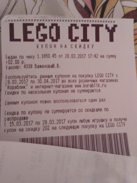 Малинка в Выбор товаров 9 лет В Кораблике, при покупке игрушки, даётся чек на скидку Лего Сити. Распродажи. Скидки. Акции. Здесь можно найти/отдать купоны: https://www.babyblog.ru/community/post/perambulator/3238853 Посмотрите еще 20 записей на эту тему Отменить Ответить Мария Может кто подскажет, а если лего уже со скидкой, то будет еще скидочный купон действовать? 22.03.2017 Ответить Малинка Скидка не суммируется с распродажными. Я так поняла с обычными скидками можно получается?! 22.03.2017 Ответить Кристина а сколько по нему скидка, подскажите 22.03.2017 Ответить Малинка В купоне правила написаны. 20% скидки получается. 22.03.2017 Ответить Поделитесь купоном/скидкой в Babadu, Lapsi или Акушерство Babyshop, скидка на обувь до 20% Чаты Беременных Выберите чат: Январята-2026 Февралята-2026 Мартята-2026 Апрелята-2026 Майчата-2026 Июнята-2026 Июлята-2026 Августята-2026