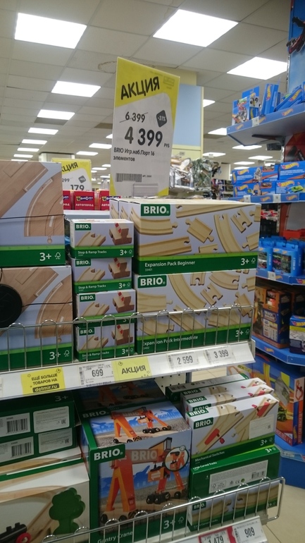 я смотрела на сайте, мне показалось дорого даже со скидками. я в майшопе с 25 скидкой дешевле брала. а что подешевле в дет мире, так нет в наличии.