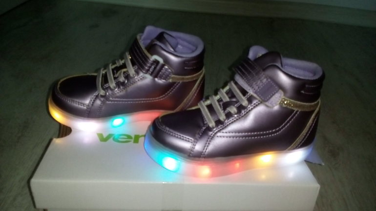 Только хвасты! (одежда и обувь)Заказала серые 26 размер (стелька 16,7) 24 евро, и фиолетовые 27 размер (стелька 17,3) 36 евро. У фиолетовых 7 режимов подсветки и usb-шнур в комплекте! Пищу от восторга. Фото.