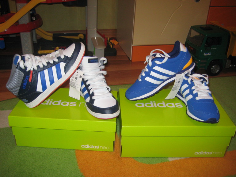 Только хвасты! (одежда и обувь)Заехали сегодня в Адидас-дисконт и вот, что приобрели Глебу. Кеды 33 размер (маломерки), кроссы 31.Очень легкие и мягкие. Ребенку на ножку 19,5 см.