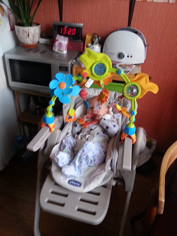 Стульчики для кормления, шезлонги, качелиДевочки у кого стульчик чикко поли мэджик, помогите!)) нам три мес. Сажаю дочку со вкладкой 0+ и подбородок просто упирается в грудь, это что за такое положение? Мы максимально перевели стул в горизонтальное положение. Но как задрат затылок это же Жуть!