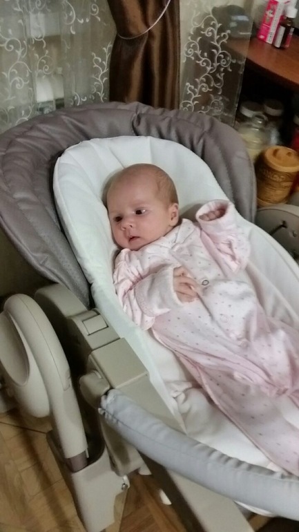 Ириш, мне тоже кажется, что всё окей, чем старше будет Олечка, тем органичнее будет смотреться в стульчике. У малышей просто шеи почти не видно в принципе. Я тебе в вотсап скину фотку, как Любаша в шезлонге сидит, смотрится примерно так же.