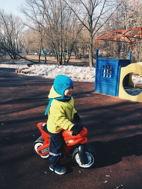 В итоге потрачено 3400 р. А радости море. И вот кстати площадочный наш друг нашего возраста пытается кататься на беговеле Страйдер. Нифига не получается и постоянно наш мотик просит. Я не говорю что все дети так, но начинать с такого проще, факт.