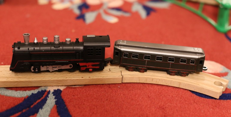 купили поезд за 99. ездит, есть звук и свет. едет очень быстро и очень громкий.