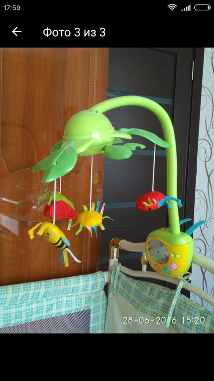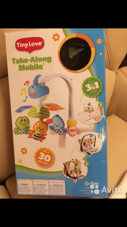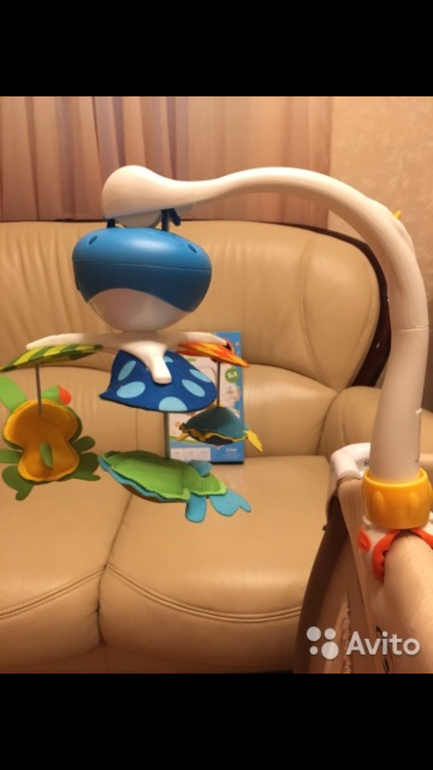 Это Тини лав. Там в комплекте крабик ещё. Можно и на коляску цеплять. У нас на даче стояло. Музыка очень спокойная. Колыбельные прям) у нас домашний стационарный бумбокс- там конечно, поживее музон)