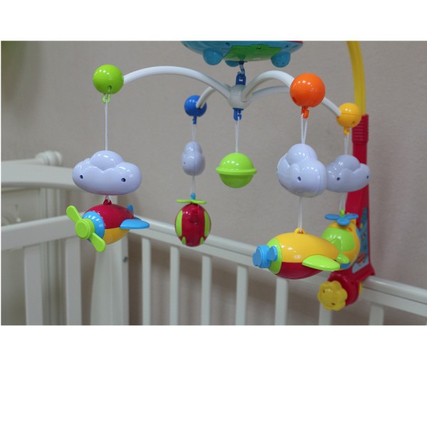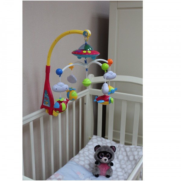 У нас вот такой был Мобиль Win Fun 0805 NL. Крепление универсальное, крутится , звуки природы, подсветка. Мы остались им довольны.