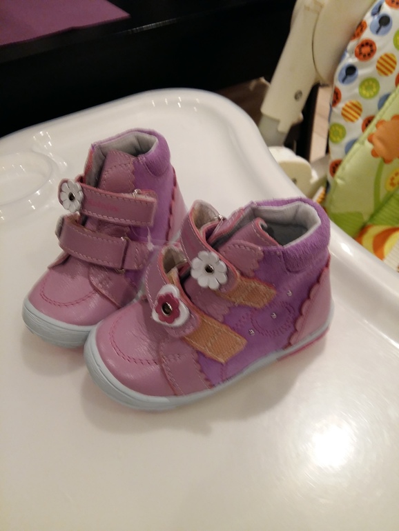 Сейчас гуляем в ботинках кожа на коже, как ваши первые. Вчера были в торговом центре и у ребёнка ноги взмокли в них, хотя сидел в коляске, поэтому мы будем носить до +15 примерно, потом в кроссовки как у вас переобуемся. Гуляем практически всегда в коляске, ногами минут 10 может потопаем и все. В мае уже можно будет в кросах ходить. Если вам на сейчас нужны ботинки, тогда первые оставляйте, недельки через 3 уже можно будет переобуваться.