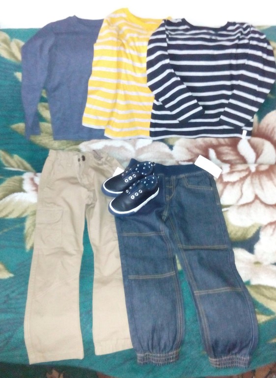 Фото с телефона, извините за качество. Вот надо еще футболок и несколько шорт. Не успела купить футболки за 130-200 р. на сайте и шорты за 450 р. Может, в магазине что-то осталось.