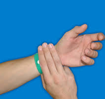 ей только 5 лет, еще не подросла) там по инструкции надо: три пальчика -безымянный, средний и указательный, у ребенка! положить безымянный на полоску сгиба у ладони, а под указательным будет точка на сухожилиях. Вот на эту точку и надо кнопкой браслета придавить.