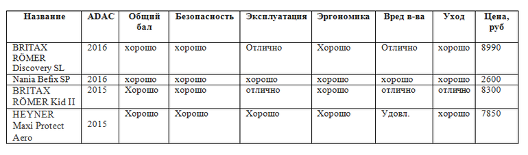 Итак, результаты краш-тестов детских кресел ADAC, весна 2016 года. Напрямую их можно сравнивать толькос краш-тестами автокресел за 2015 год сертифицированных .