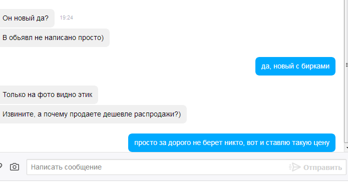 Я в прошлом году куртку токка зимнюю новую продавала с штанами бу( в придачу) за 1,5 тр и валенки котофей новые за 500 р. Ни звоночка месяц. Потом сразу забрали. И это в сезон(!)