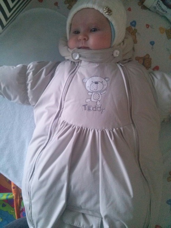 Родились 26 ноября.) В нем выписывались, всю зиму откатались и сейчас донашиваем.) Он на пуху. Никаких толстых конвертов на овчине не было. В коляске просто лежит тонкий конвертик. Всю зиму и сейчас одевала просто на х/б слип. Быстро и удобно очень одевать.)