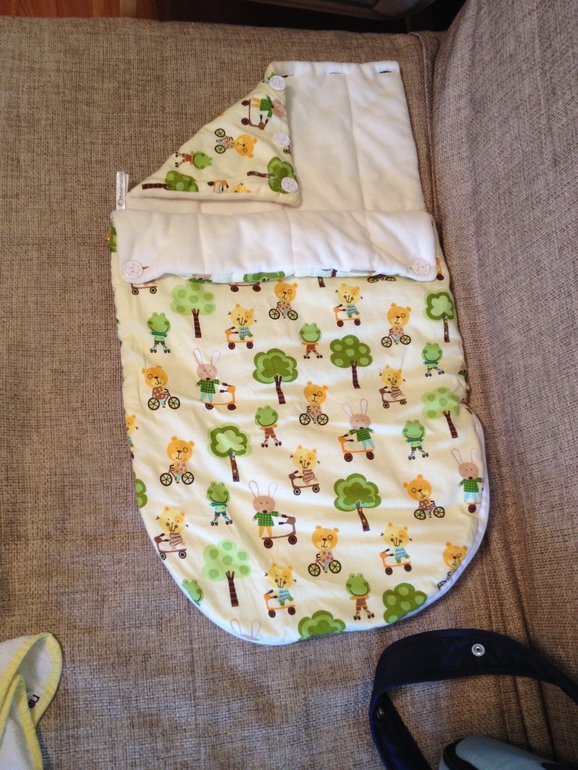 Здесь же я всегда вынимаю теплого ребенка. Хотя повторюсь, в конверт пихаю прямо в домашнем слипе, без поддевок.