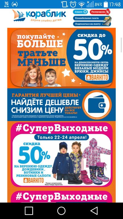 с завтрашнего дня вроде скидка 50 % на одежду и обувь Баркито! Рассылка пришла!