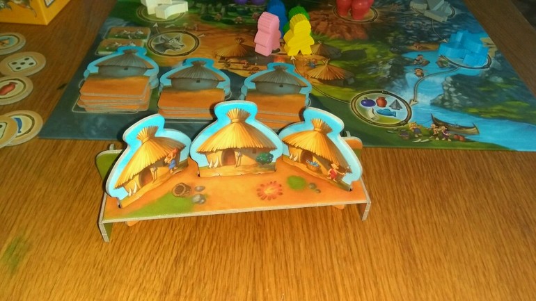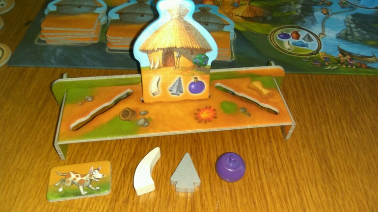 Товары нужны нам для построения хижины,жетон собака заменяет один из недостающих товаров