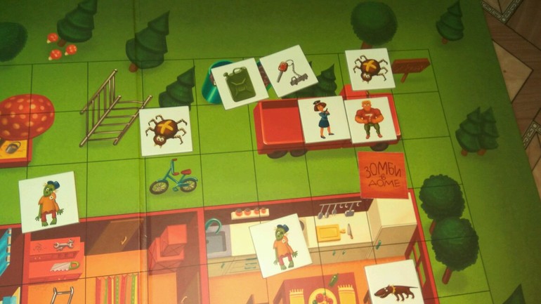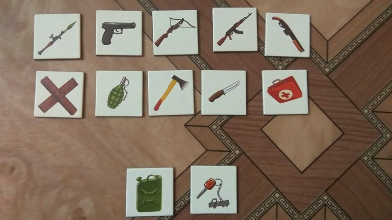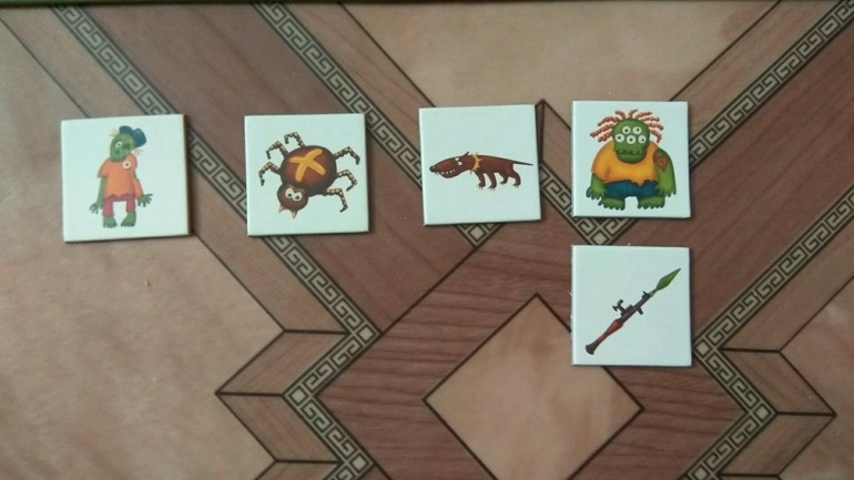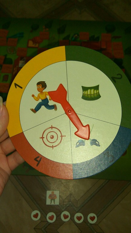 Если вы открыли таил с монстром,вы снова крутите стрелку и смотрите из какого оружия его можно убить,если стрелка останавливается на убегающем человеке,так и быть-вы просто сможете убежать от зомби на определенное количество клеток,а если стрелка останавливается на зубах,вам не повезло,вы укусаны и теряете одно сердечко жизни