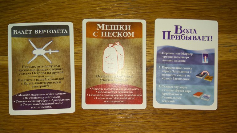 За один свой ход игрок не только передвигается по острову,но и берет по две карты из колоды действий и колоды затопления