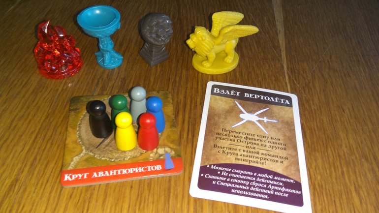 Команда победит только в том случае,если она соберет все артефакты,все игроки соберутся вместе на круге авантюристов,а на руках у любого из игроков будет карточка взлета самолета