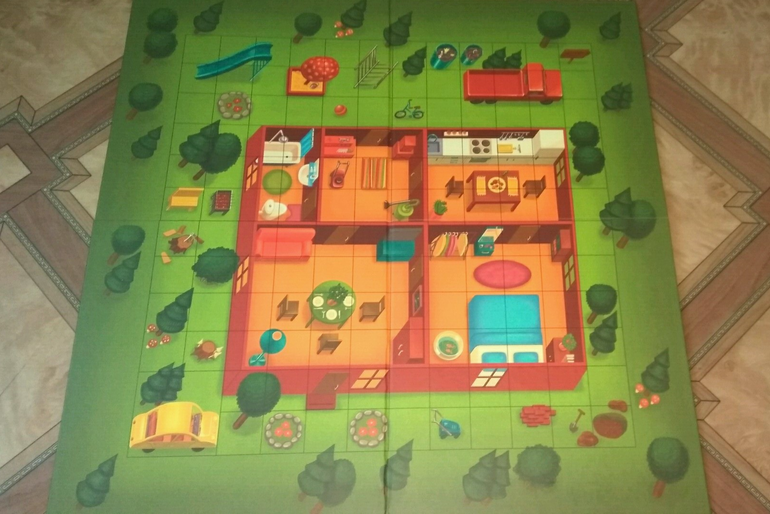 Игра очень красивая,фишками служат две красивых пуговицы,есть даже золотой наперсток
