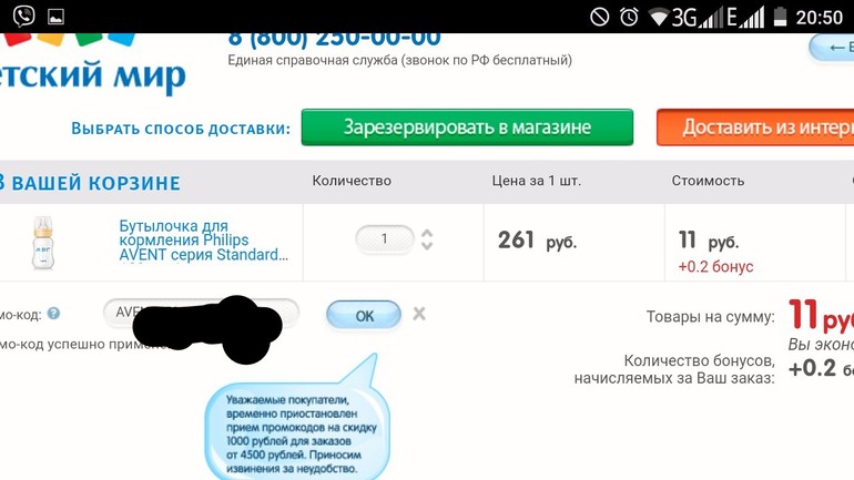 Может кому пригодится ,Дет.мир рассылает скидку на авент 250р
