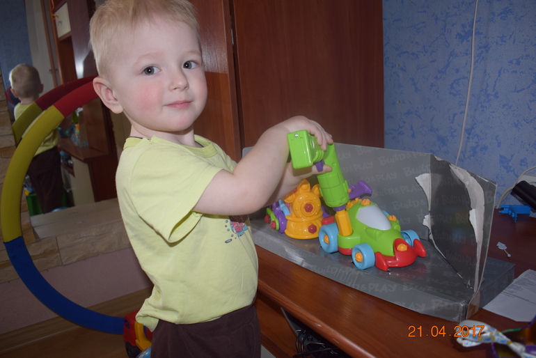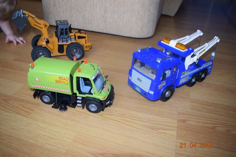 Мы Родители подарили трактор радиоуправляемый. Бренд пилотаж арена, купили его еще месяц назад хочу сказать что игрушка качественная,удобное управление. уже научился управлять немного. особенно нравиться поднимать и опускать ковш, складывать в него кубики лего.