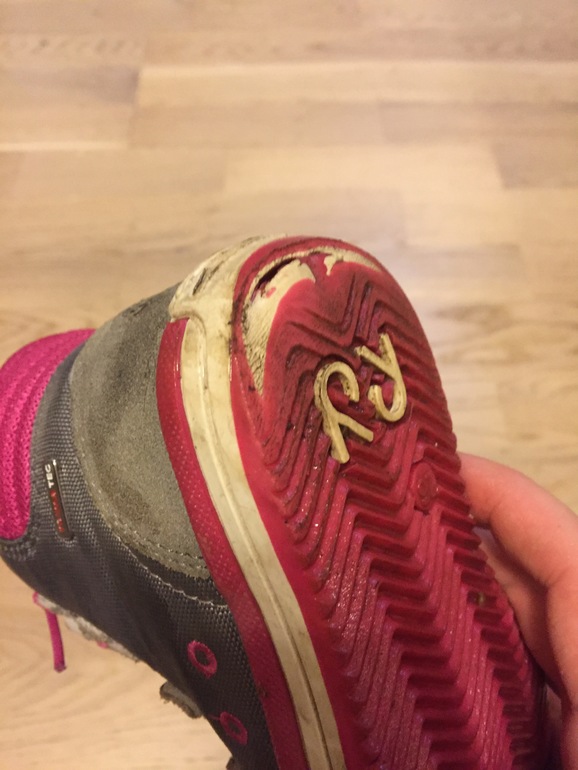Подошва протерта на пятке до дырки! Это как так?! Она их носит первый сезон, максимум 2 месяца.. в общем, редкостное г... эти Reima wetter оказались( на пятке пятна-это мокрое от воды, не обращайте внимания.