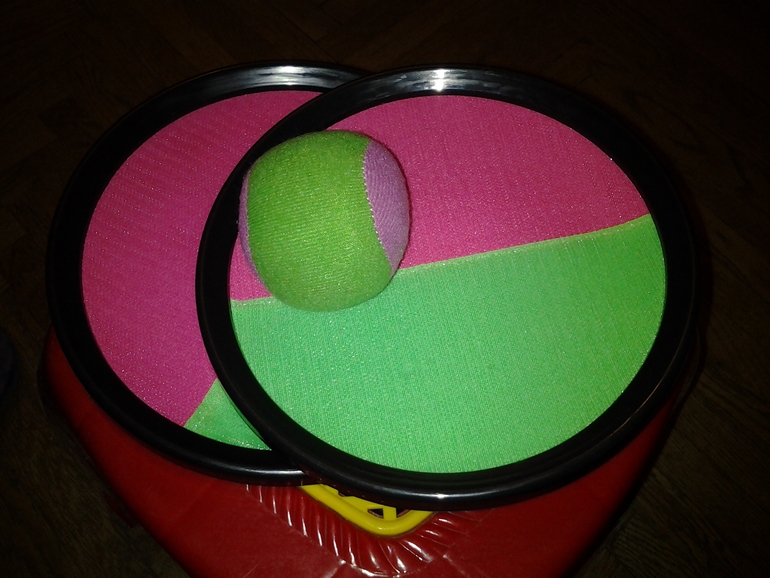 Две ловушки с резинками для фиксации руки, поверхность-липучка + тканевый мячик. Мои играют. Цена 99р