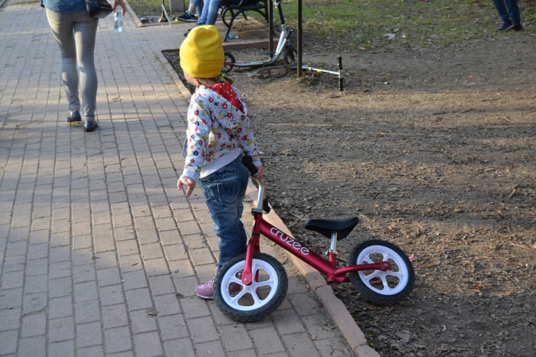 ну и наш беговельчик-немецкий крузе, купила спонтанно, вообще не планировала, но не жалею ни сколько-дочка не слезает, он легкий очень-она сама таскает его по всем паребрикам-бардюрчикам и по лестницам тоже.