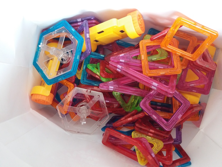 5. Аналог магформерс с али. Мы сами просили чтобы на пробу нам друзья не разорялись на оригинал, а купили на али. Набор размера мини... и стоит не 2 рубля - а качество.... вроде все яркое и магниты держат, но очень и очень слабые. При постройке высоких фигур магниты не выдерживают.