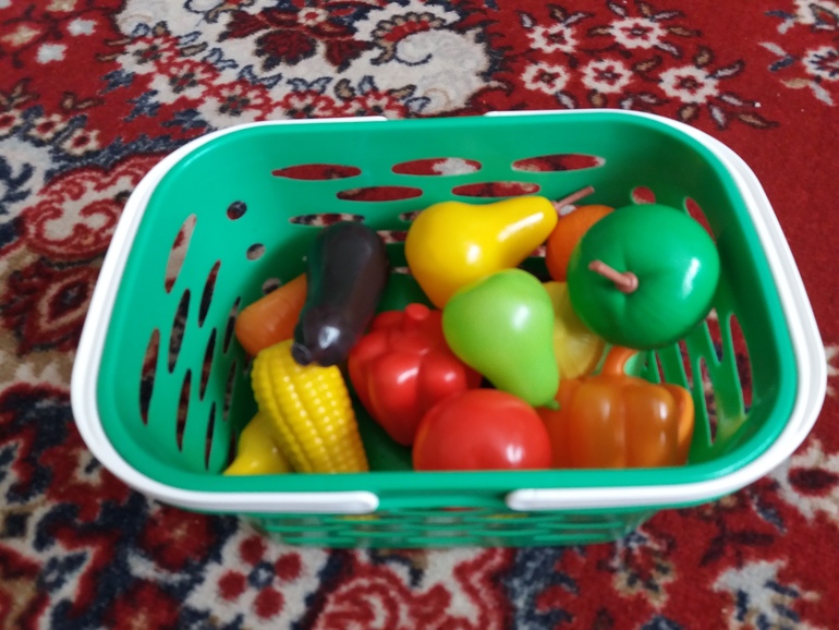 3. Возвращаясь к кухне - подарили отличную корзинку с овощами и фруктами и набор посудки. Посуду к сожалению не сфоткала, т.к. она в пакете и шуметь доставать, пока дочка спит не хотелось.
