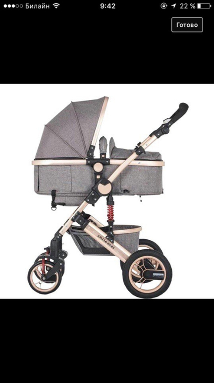 Китайская коляска( еслине ошибаюсь) . У них очень широкая колесная база, не очень удобно .Хотя для кого как. Коляска только на летний период. Для зимы тонковата ткань. У меня была подобная, в 2 года ребенок уже не мог сидеть, упирался в кап. Сама база крепкая ,добротная .