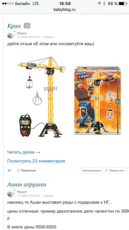 Не знаю, как найти ваш пост и почитать. Но скорее всего вы путаете. За 1425 руб кран высотой 100 см. И это частная марка Ашан. Делают специально и только для них. А я написала про кран 120 см фирмы Dickie, которые везде продаются. И стоят они в интернете в районе 3000. Самое дешевое, что нашла 2400.