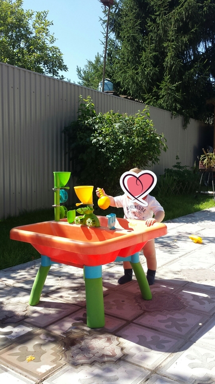У нас столик пластмассовый, а под крышкой пустое пространство, которое я приспособила для песка. Ребёнку очень нравилось, но песок был потом по всей квартире. В результате отказалась я от этого занятия, пусть лучше в песочнице играет