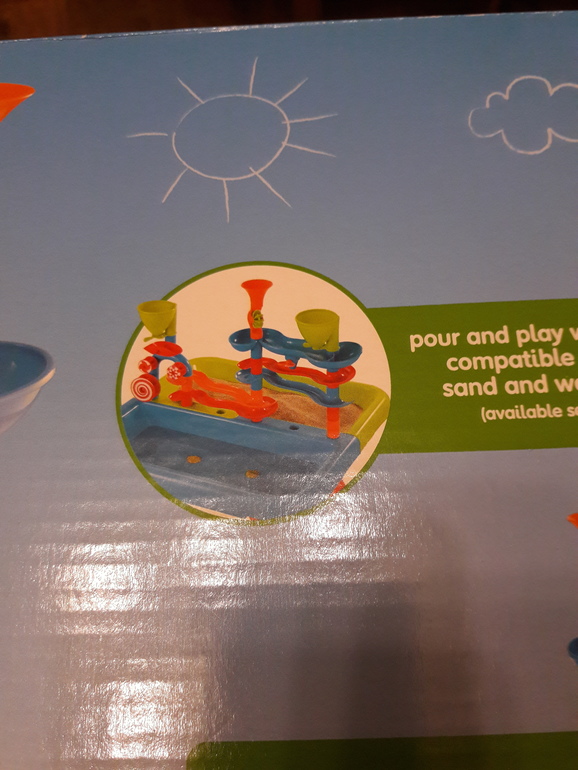 -песочница. Купила разные формочки для песка. В основном башенки замок строить. Горка для воды и песка очень увлекает ☺️
