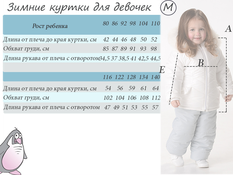 главное правильно измерьте вашего ребенка и уточните длинну куртки и брюк у каждой фирмы свои размеры. Модели для девочек тоже бывают разные одни прикрывают попу , другие удлиненные до середины бедра. Пилгуни большемерят примерно +6 см от роста написанного на бирке.