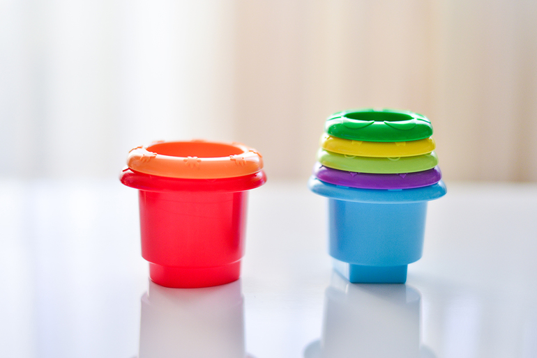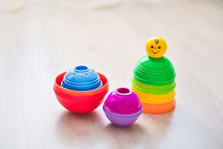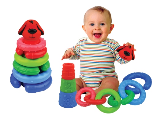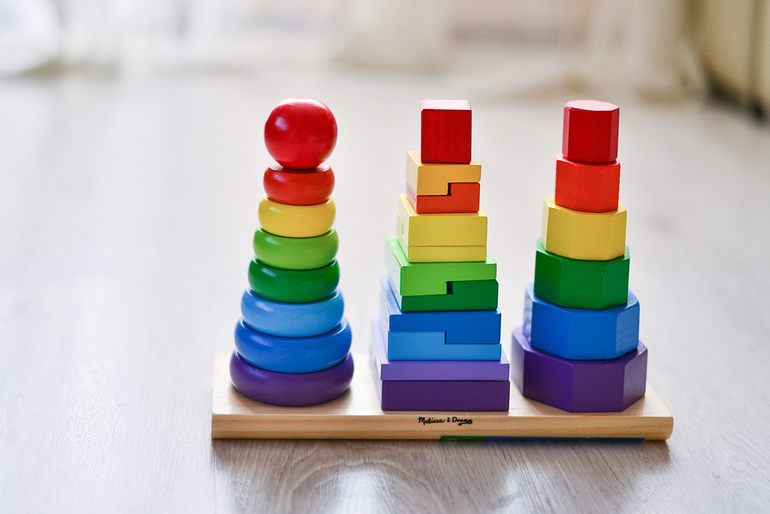 у нас лучше всего в деревянные пирамидки играл, радуга тоже шла на ура.