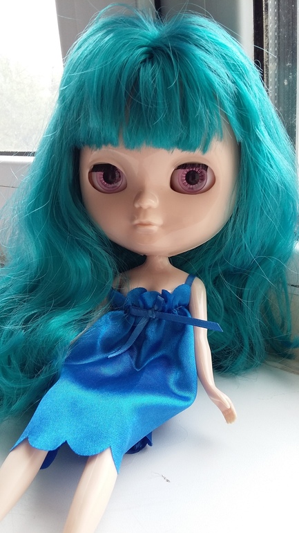 Ребенок на День Рождение заказал куколку с голубыми волосами. Нашла такую на Али.