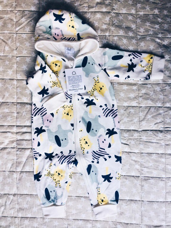 Комбез Polarn O'Pyret,62 р-р,висел в отделе для девочек)))Но я решила,что зеленые,желтые и фиолетовые животные и мальчику тоже подойдут))))Кароче,понравился очень)