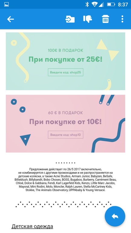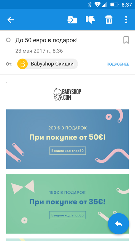 Вера в Выбор товаров 9 лет Бэбишоп: где-то подвох...))) Распродажи. Скидки. Акции. Посмотрите еще 20 записей на эту тему Отменить Ответить Александра Плэйн Крутые коды)) а вот мне они не приходили(( Эх 24.05.2017 Ответить Аля Я покупала в остине 2 нелели назад на 2 тысячи. И мне подарили на карточку 8 000 рублей. Но ямогу ими оплатить в определенные дни 30% покупки 23.05.2017 Ответить Аля Может такая же система 23.05.2017 Ответить Светлана 🙈🙈🙈 23.05.2017 Ответить Лилия Да это перепутали) я проверила в корзине))) 23.05.2017 Ответить Екатерина Суммы перепутали местами))) 23.05.2017 Ответить Вера Ага)))Покупаешь на 50 евро и 200 в подарок - шикарно))))) 23.05.2017 Ответить Button Art Нужна скидка в Олант Чаты Беременных Выберите чат: Январята-2026 Февралята-2026 Мартята-2026 Апрелята-2026 Майчата-2026 Июнята-2026 Июлята-2026 Августята-2026