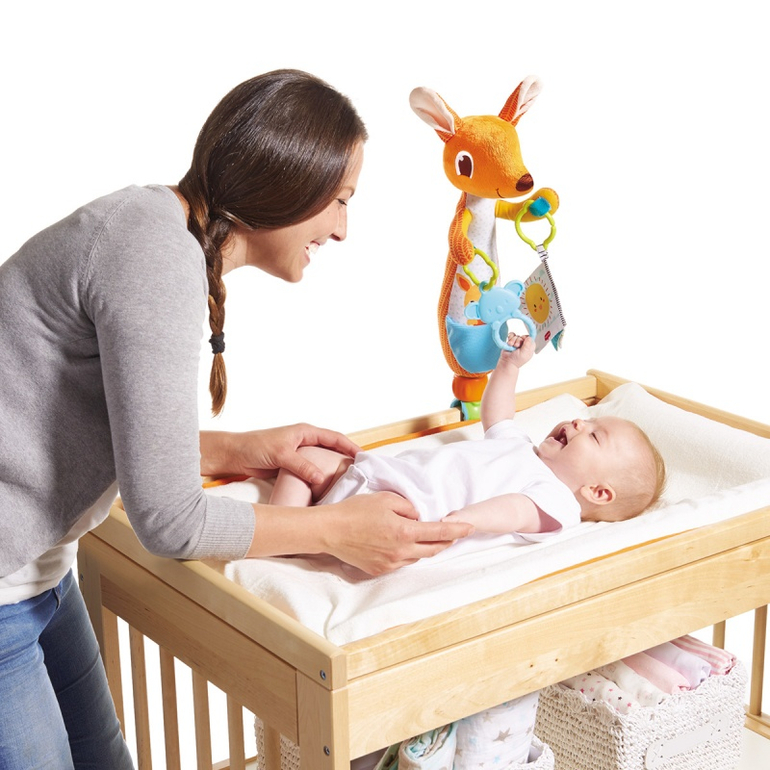 Очень прикольный кенгуренок. у нас у соседки такой, она вообще фанат Тини Лав, много новинок скупает. но этот веселый такой, слегка подпрыгивает когда ребенок его касается, и крепится хорошо. у нее он на пеленальном столике он