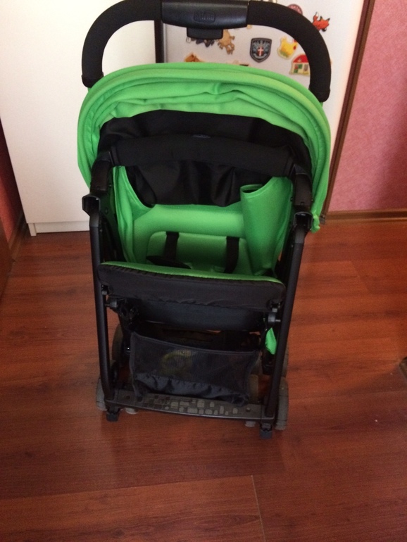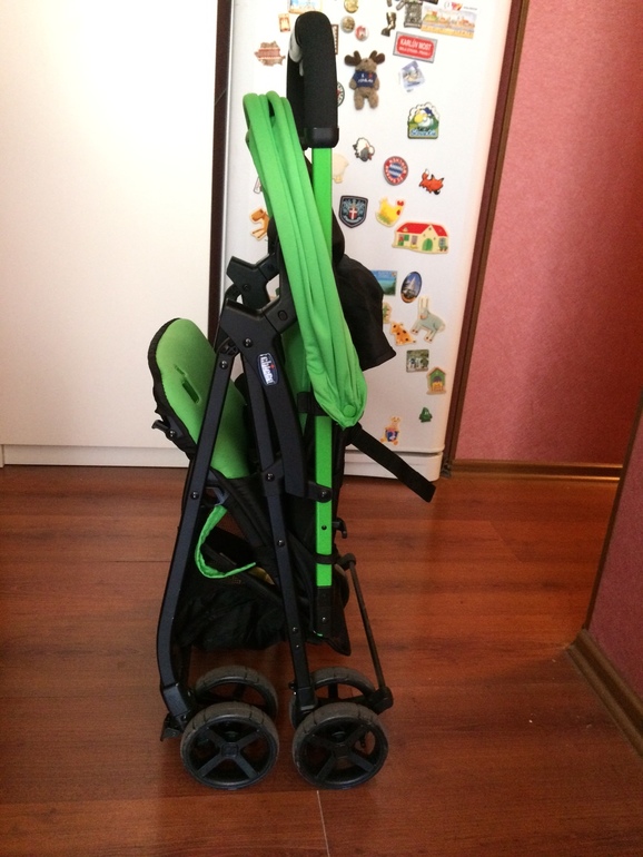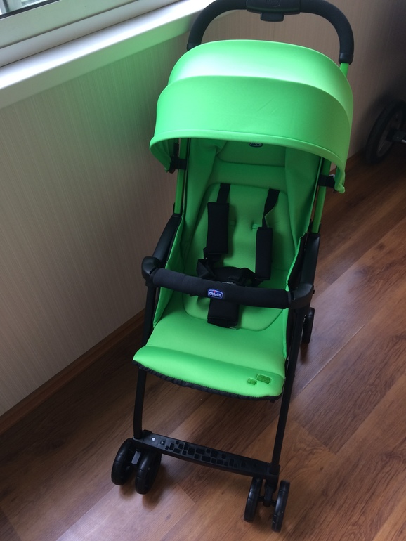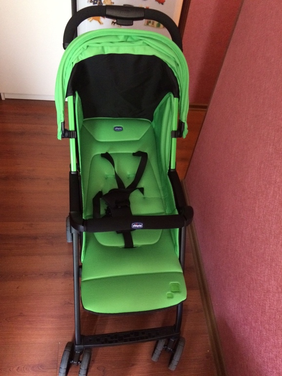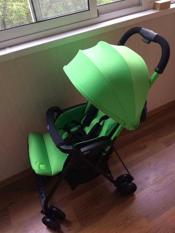 Эту модель я выбрала потому, что уважаю бренд Chicco и очень люблю разные новинки J. Также меня «купил» красивый зеленый цвет на фото и наличие таких характеристик, как легкий вес, сложение одной рукой, раскладываемая спинка и регулируемая подножка. В России коляска на момент моего заказа не продавалась, отзывов на нее пока нет, поэтому я рискнула и взяла «кота в мешке».