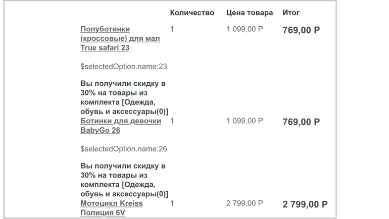 То есть скидка прошла только на мотоцикл, а цена обуви не изменилась.