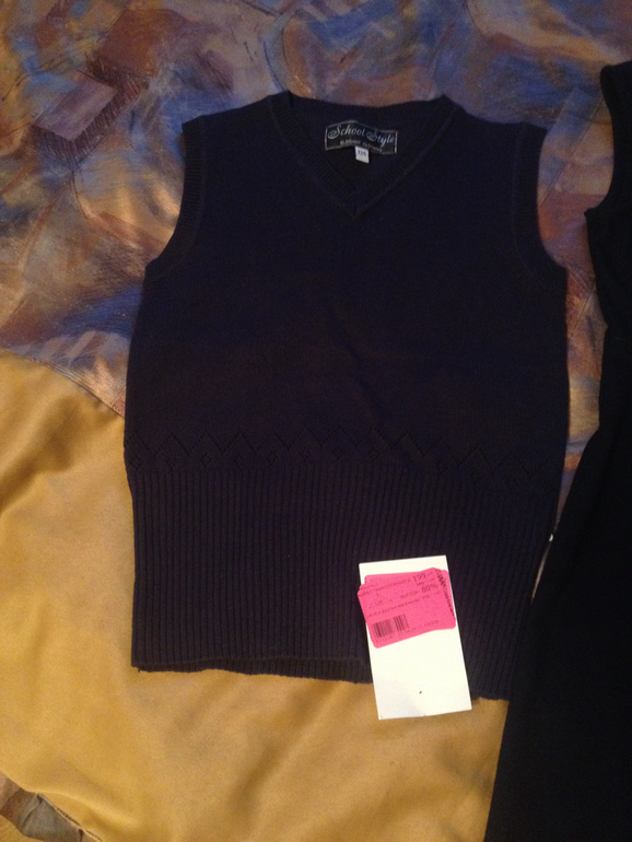 в ривьере в фамилии висят черные вязаные жилетки девочкам 134-146 по 169р одна черная вяз.на пуговицах кофта черная р.140. вроде 200-300р? шапка на мальчика бело-голубая тавитта 48-50 осень 169р. комбез розовый 86 ткань похож на мембрану 1600р хол.осень